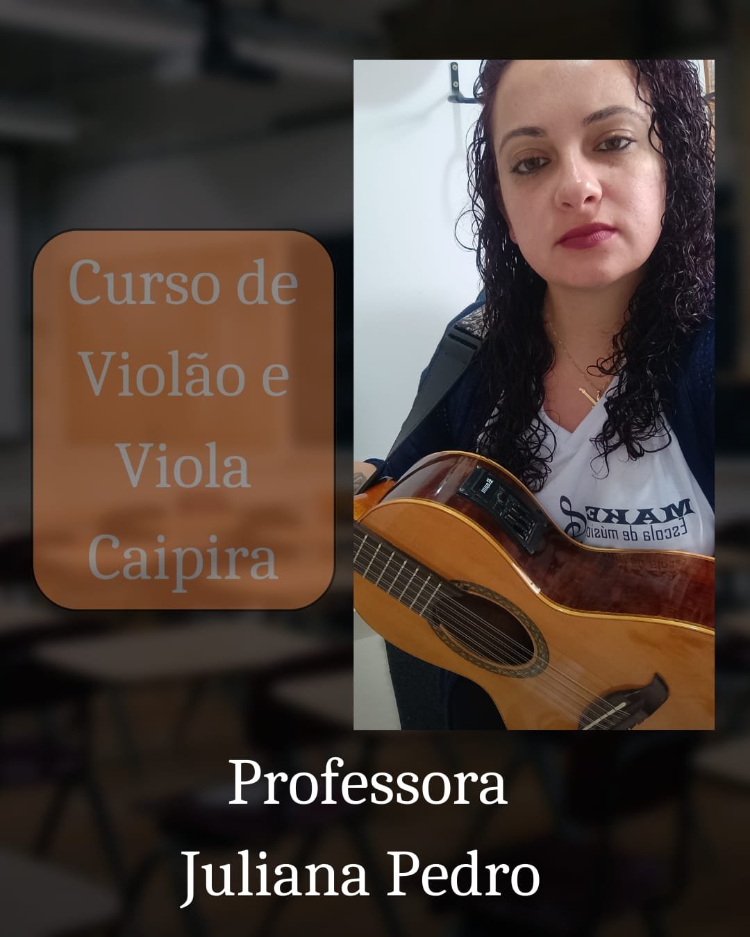 Professora de Teoria Musical (partitura), violão, guitarra, baixo, bateria e violino. Suas especialidades são: Música Popular Brasileira, Pop Rock, Reggae e Samba. Curitibana e autodidata, começou a tocar guitarra e violão na igreja.