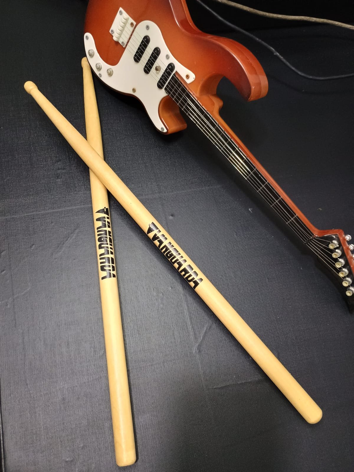 - Notas musicais no braço da guitarra